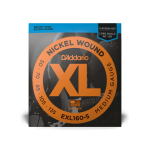 D'Addario EXL160-5 Nickel Wound 5-String Bass Strings, Medium 50-135, Long Scale EXL160-5 is the 5-string version of D?Addario?s top-selling heavy gauge bass string set. With the addition of the .135 gauge low B string, this set provides an ideal combination of strong overall fundamentals with distinctive brightness and booming, tight lows. These strings are designed for long scale basses (34"+), have a taper at 36 7/8", and are a good choice for players looking to down tune. String Gauges: Wound .050, .070, .085, .105, .135